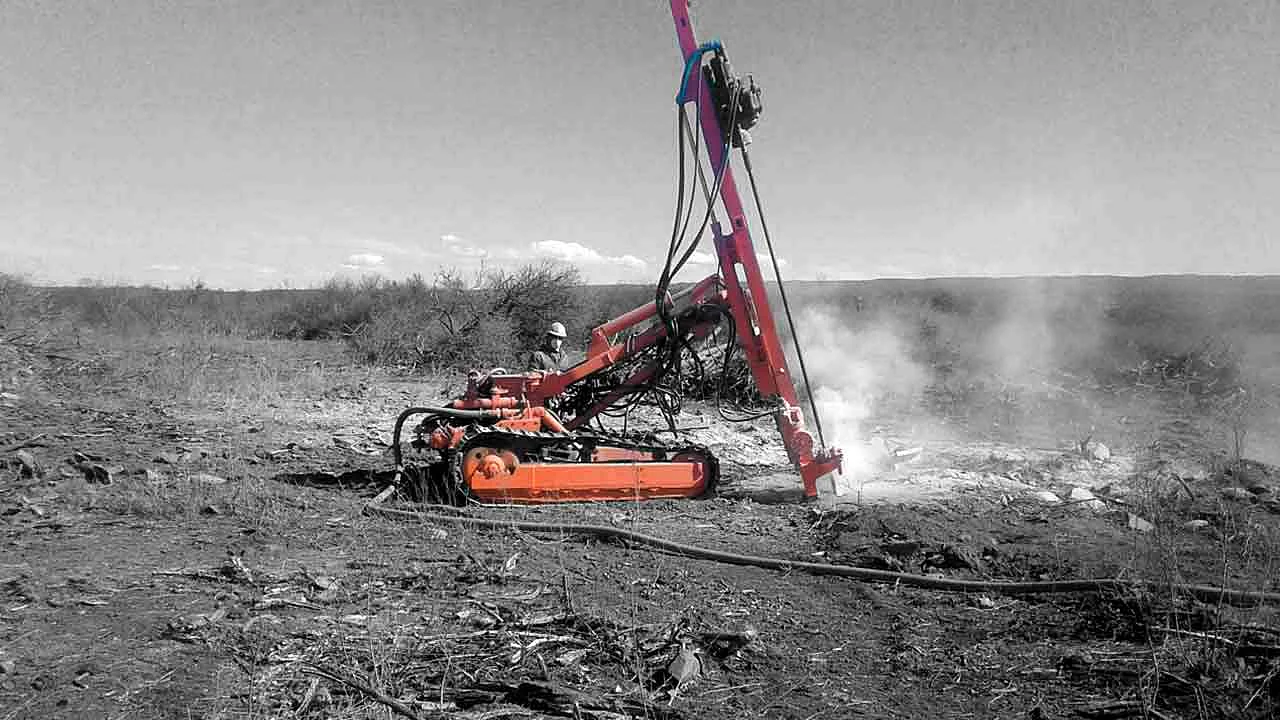 La Ranger DX700 es una plataforma de perforación de superficie hidráulica, autopropulsada, autónoma y basada en orugas equipada con cabina (F.O.P.S. y R.O.P.S.) y manejo de cañas sistema. Las aplicaciones típicas son el corte de carreteras, perforación de tuberías y perforación de cimientos, así como Perforación de producción en canteras de tamaño mediano.